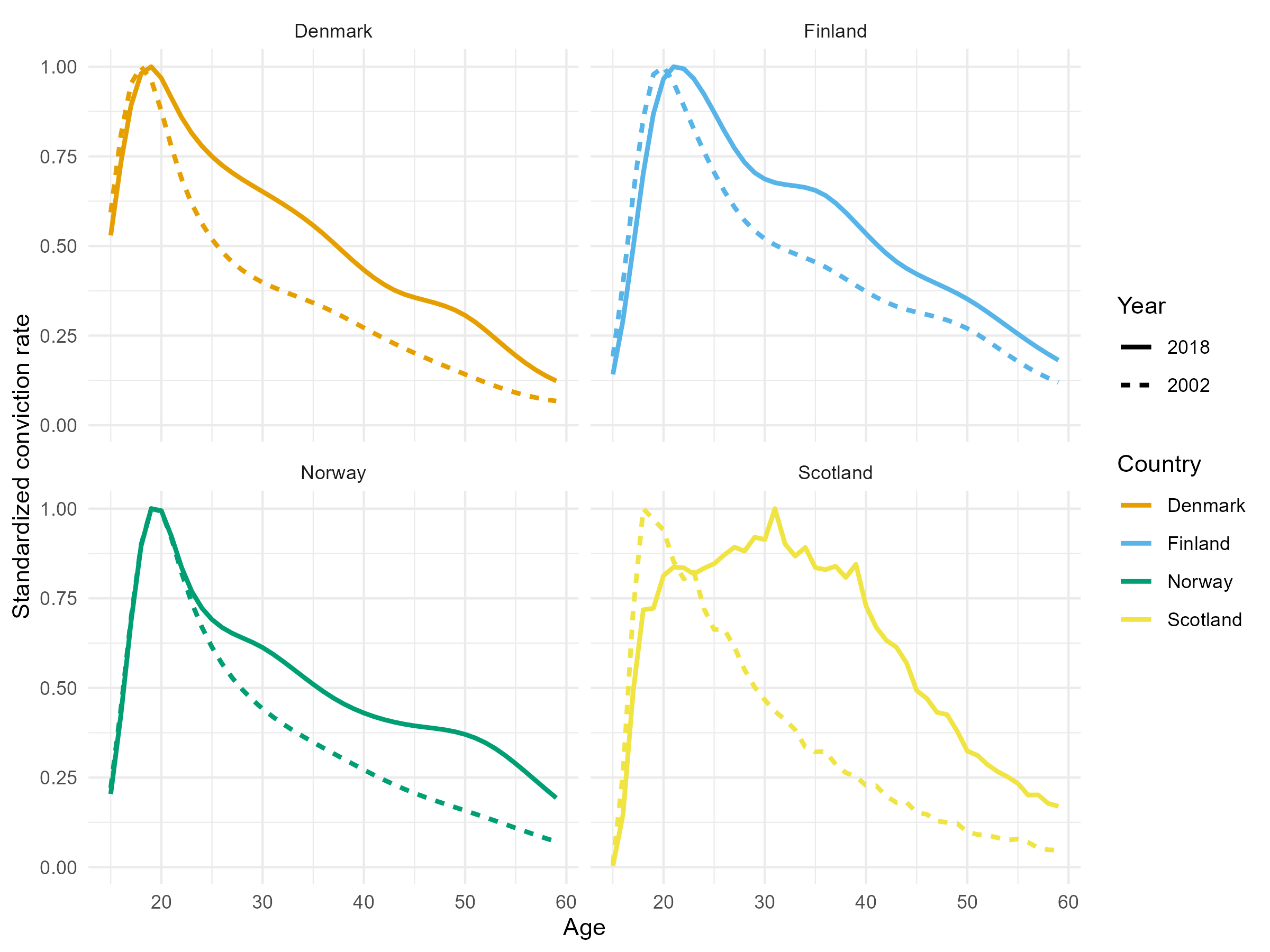 Some evidence that the ‘youth crime drop’ differs in magnitude between countries (Matthews and Minton 2018; Sivertsson, Nilsson, and Bäckman 2021; Farrell, Laycock, and Tilley 2015)